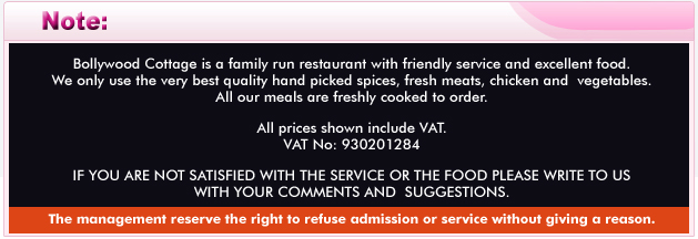 | Thank you for your custom and for choosing Bollywood Cottage ! |